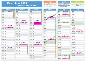 Certains ateliers pourront être décalés selon le programme du Centre Social l'Amandier (animations, vacances, évènements festifs et/ou culturels) ou bien selon la disponibilité des adhérents.